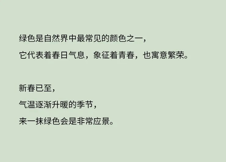 摘要:代表着希望的绿色,是迎接春天到来的最好色彩