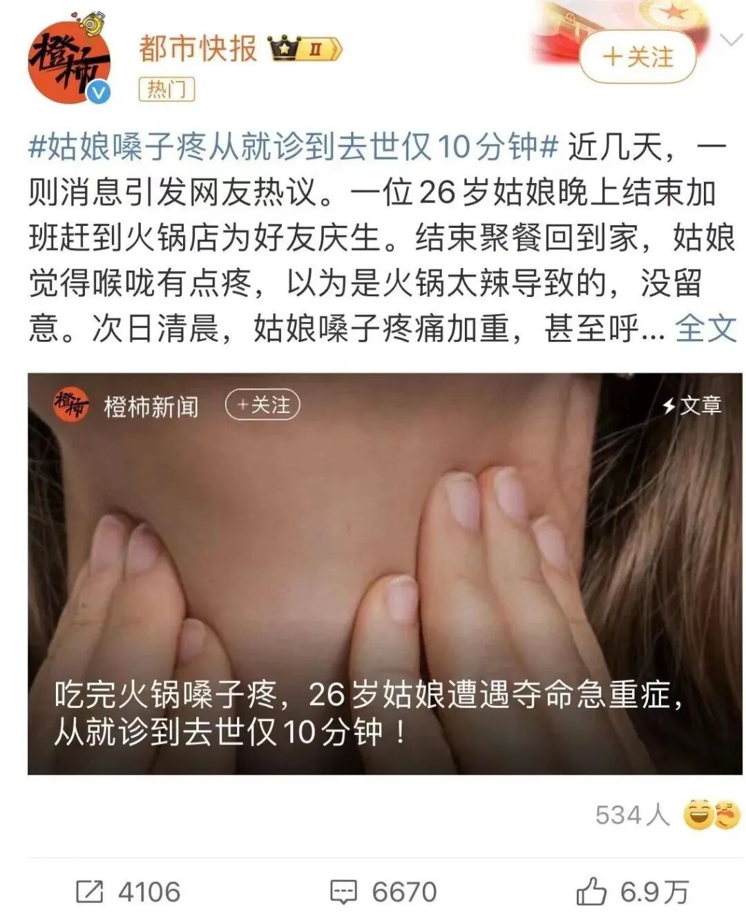 26岁姑娘因“嗓子疼”丧命,从就诊到去世仅10分钟