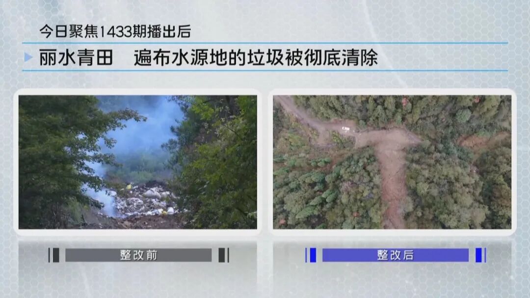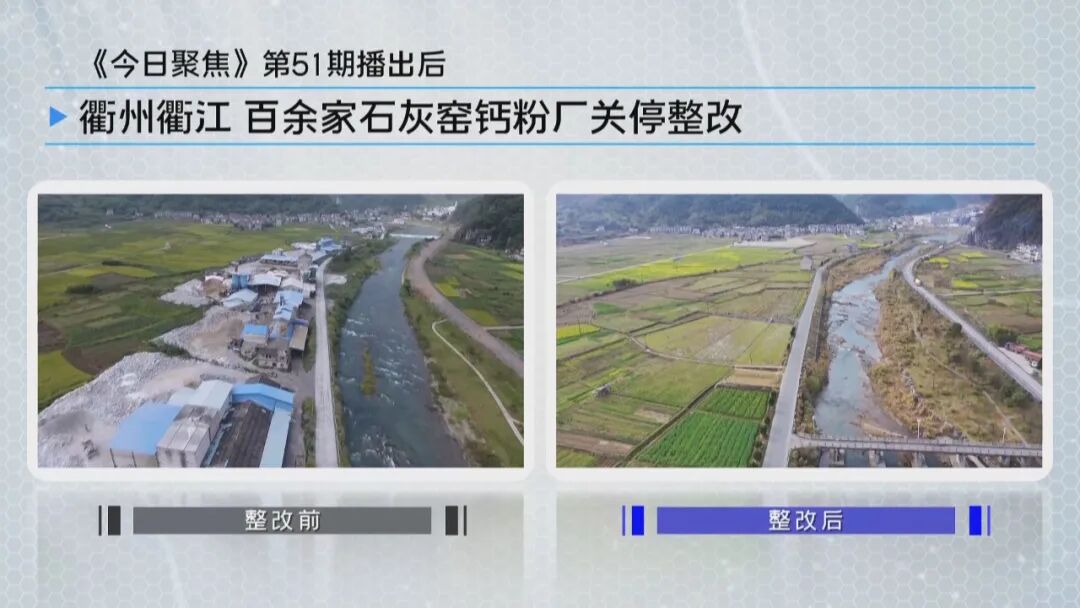 这是浙江卫视《今日聚焦》栏目本周播出的两个报道。从2014年开播以来,《今日聚焦》每期节目一直是5分钟。可不要小看这5分钟,汇聚起来却是强大的力量。栏目记者年复一年地奔波在浙江大地上,共制作了1779个5分钟的报道,就意味着监督报道了各类问题1779项。据统计,经报道推动完成整改的超过90%,500多处河流、海域等污染水体重回清澈,14000余亩违法用地得到整治,保护基本农田和耕地6000余亩,解决民生痛点500多项,排除重大安全隐患200余处。