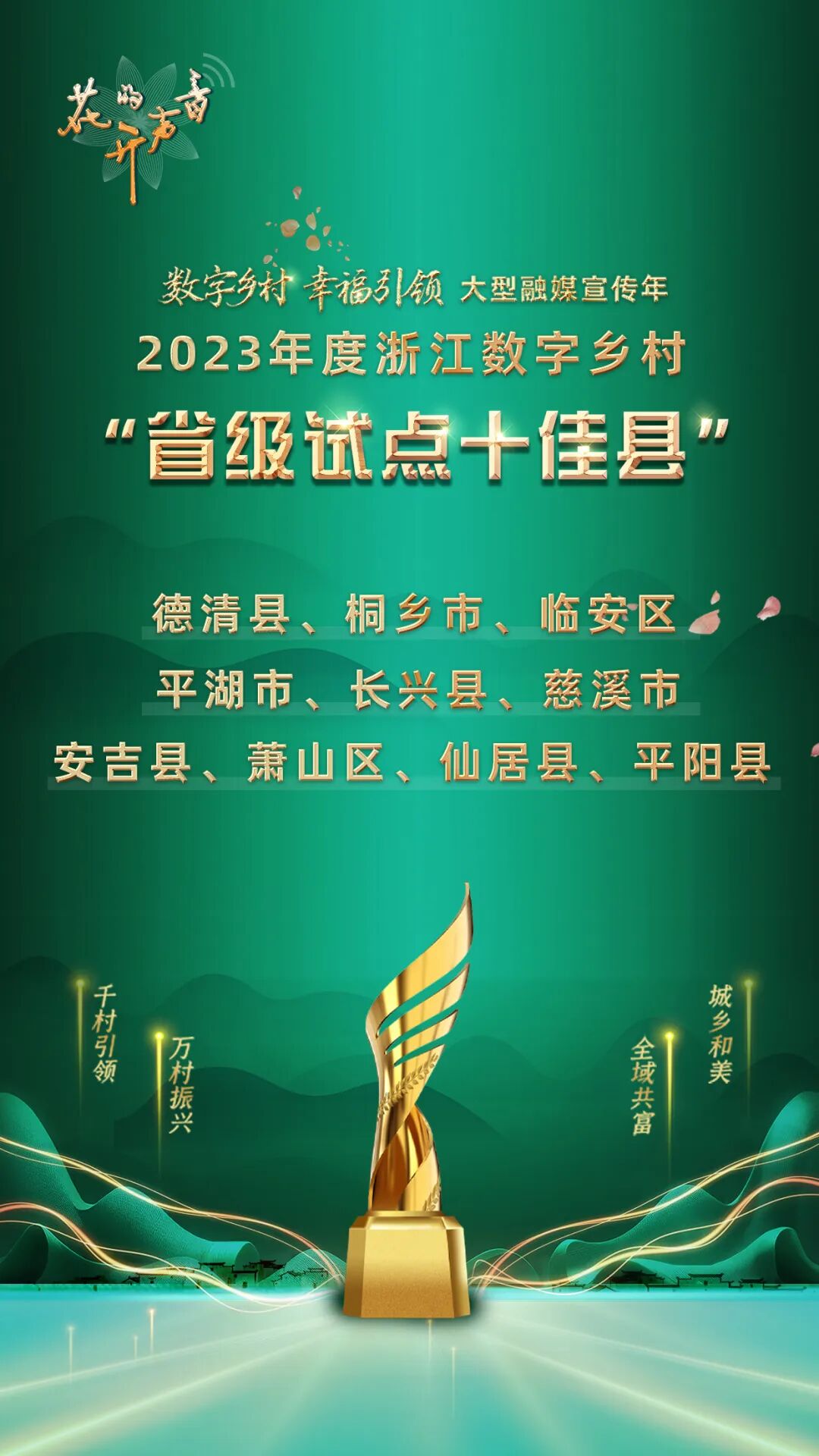 今天的活动,有一个好听的名字,叫“花开的声音——数字乡村 幸福引领”。寓意就是在数字乡村的引领下,乡村振兴的绚丽之花在浙江大地上朵朵绽放。活动由省委宣传部、省农业农村厅指导,浙江广电集团、中国电信浙江公司联合主办,FM93浙江交通之声、中国电信浙江公司农村发展办公室策划推出。活动现场,还揭晓了浙江数字乡村建设十佳县、百优村。可爱的浙江数字“三农”代言人——“浙农娃”3D版形象也升级亮相。![]()