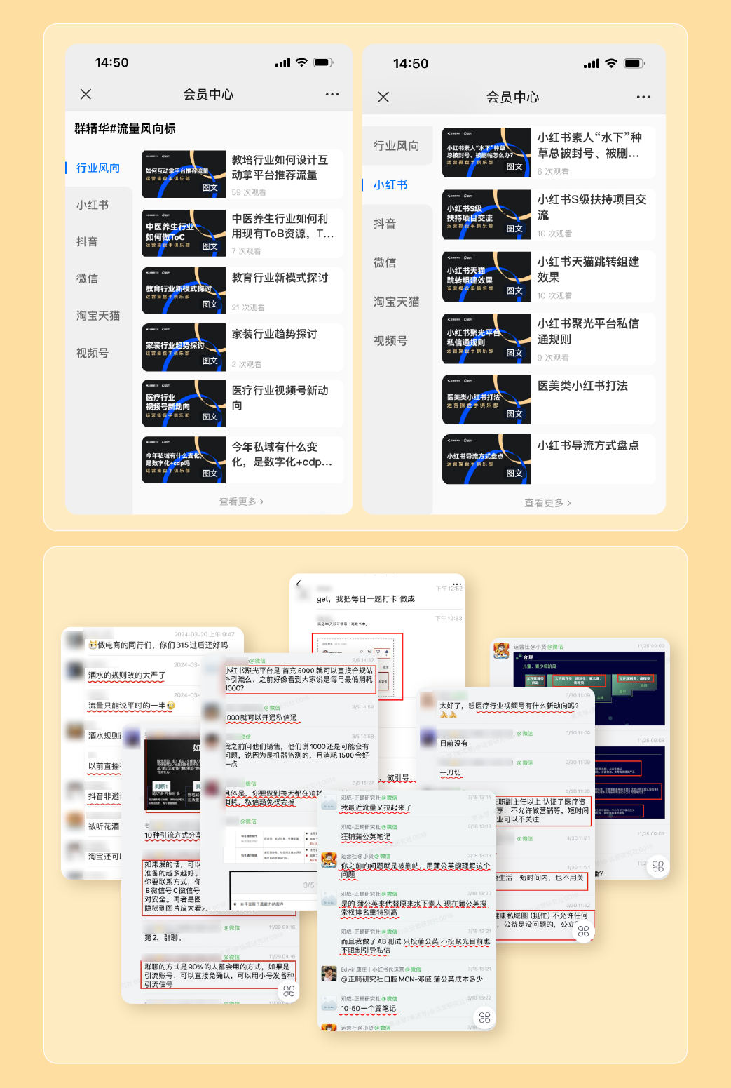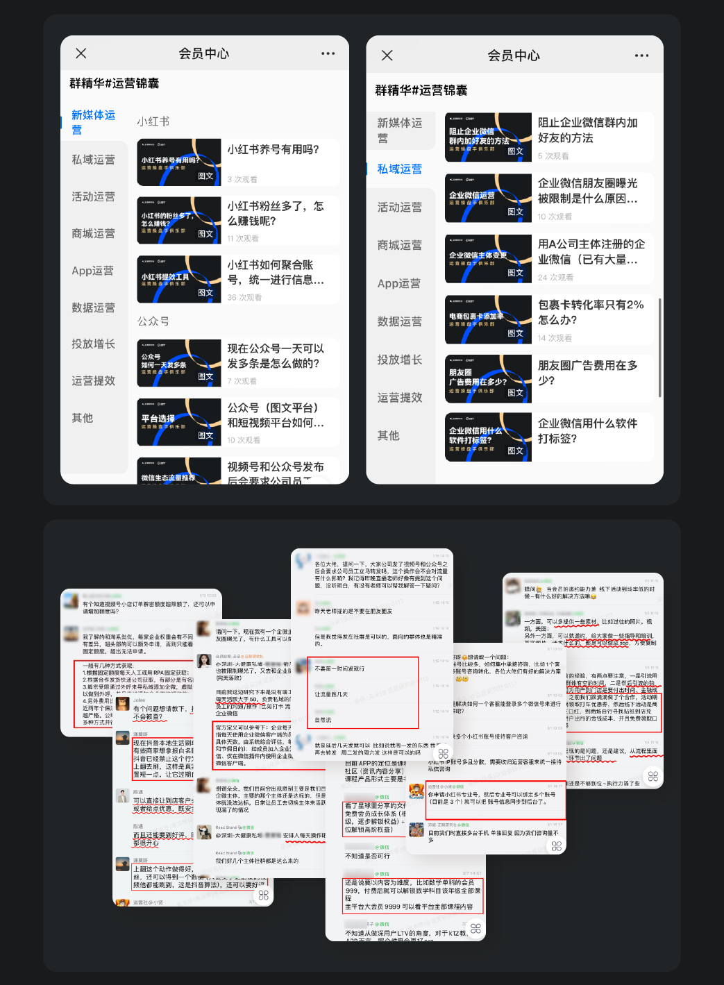 和这位会员一样,在细分行业拿到结果的会员还有很多,他们每个人都有在抖音、小红书、快手、视频号、企微私域,甚至是快团团等流量平台的一手实战案例。我们会邀请他们分享用真金白银实践出来的业务经验,真的都非常非常的值钱。