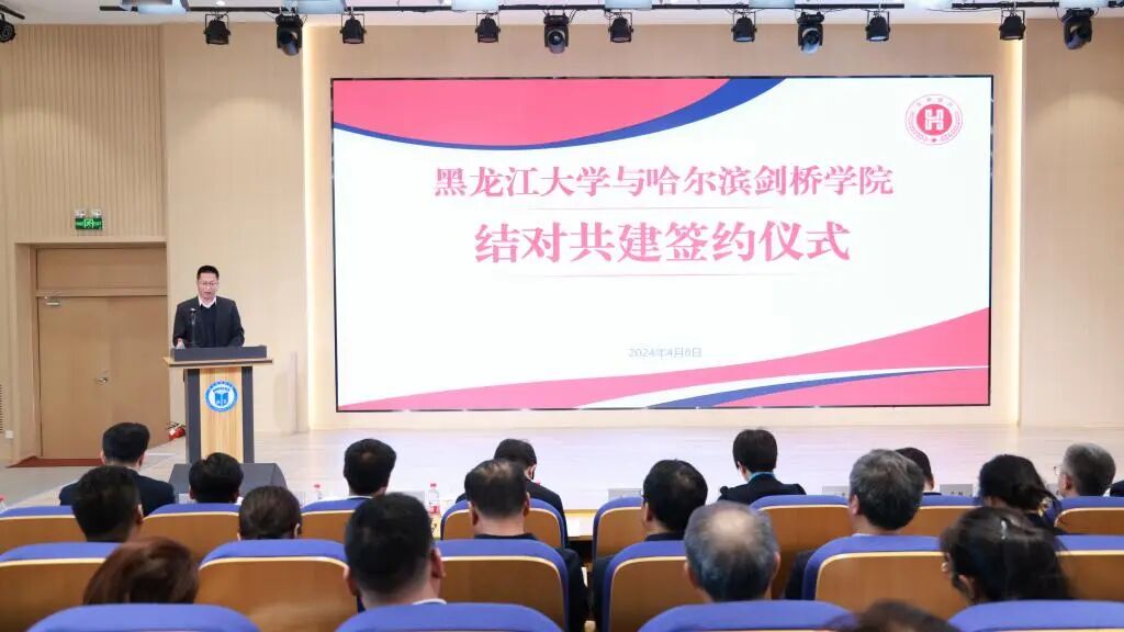 4月8日上午,黑龙江大学与哈尔滨剑桥学院结对共建签约仪式在哈尔滨剑桥学院举行,省委教育工委副书记王震、省委教育工委组织部部长赵洪斌出席签约仪式。校长王敬波、党委副书记李君明带队参加签约活动,学校办公室、组织部、经济与工商管理学院、电子工程学院、西语学院、机电工程学院、教育科学研究院、艺术学院、建筑工程学院等单位主要负责人一同参加。签约仪式由哈尔滨剑桥学院副校长张颖春主持。
