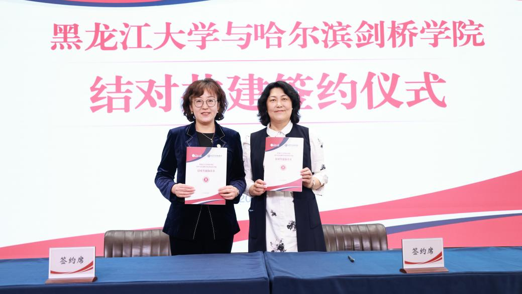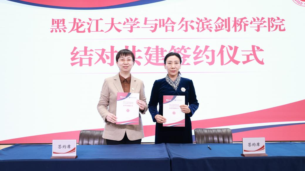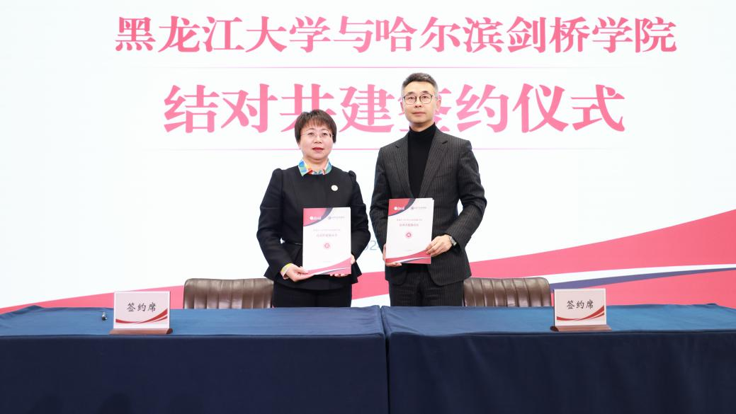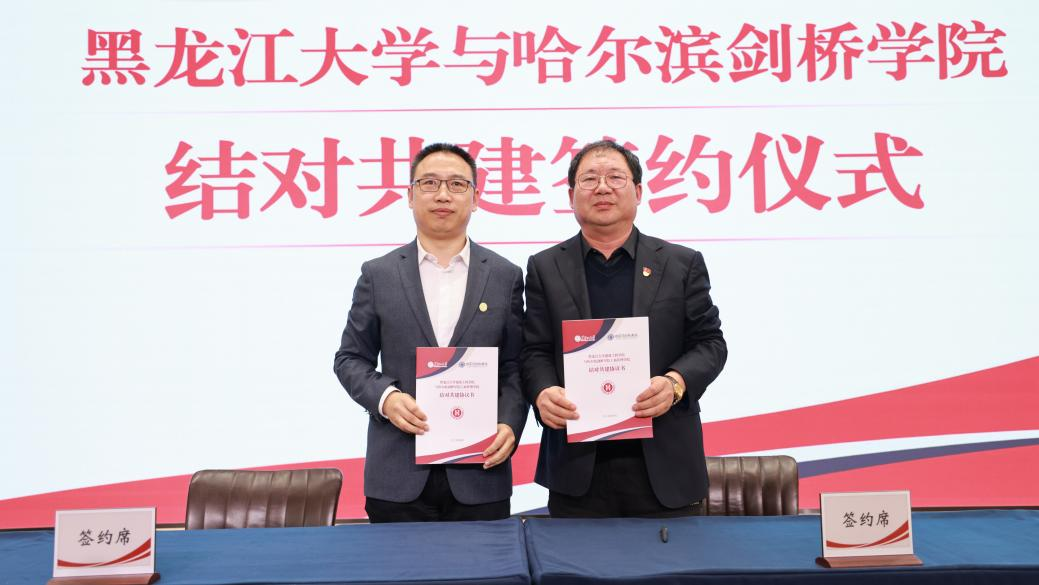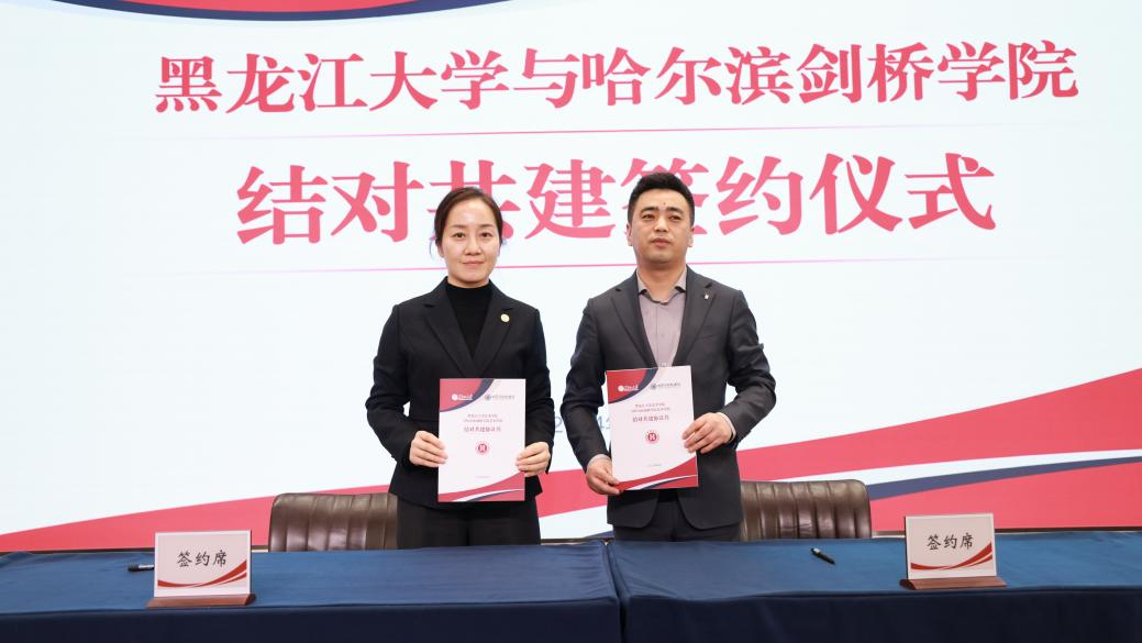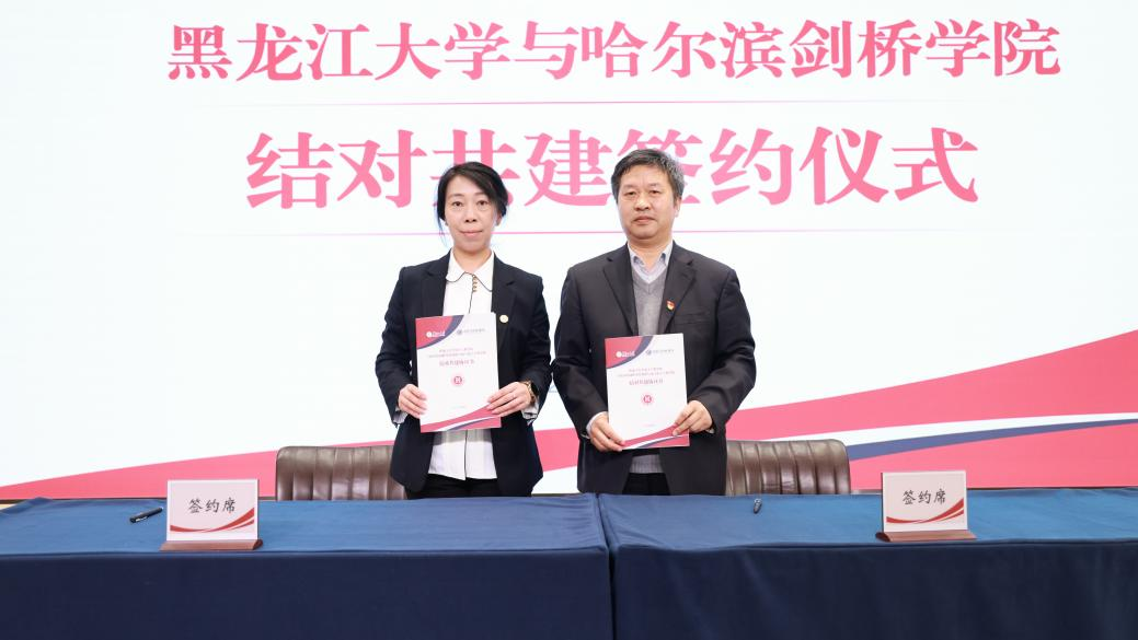 哈尔滨剑桥学院党委书记袁伟在致辞中表示,作为全省首对公办与民办结对共建的高校,四年来,两校在党的建设、人才培养、科学研究等方面都取得了丰富的共建成果。他希望,在新的结对共建期,两校要以优质资源共享为核心,以促进两校协同发展为重点,积极拓展结对共建的新领域新途径。针对两校未来结对共建发展方向,袁伟提出三点设想:一是致力于拓展合作领域。以党建共建为载体,推动党建与思政教育、人才培养、科学研究、学生服务与管理、招生就业等方面开展全面共建、全方位共建,促进党建与业务工作在共建中实现深度融合。二是致力于推动协同发展。探索新的合作模式和机制,共同应对高等教育改革发展带来的新机遇新挑战,共同为教育强国教育强省建设作出积极贡献。三是致力于辐射共建成效。及时总结提炼在结对共建中所形成的好经验好做法,构建具有可推广可复制的共建体系和工作模式,让共建成果惠及龙江其他结对共建的院校。王敬波校长在致辞中表示,在省委教育工委的有力指导下,在双方共同努力下,两校通过结对共建,共同推动双方办学事业向更高水平发展,成为全省典范。她对新一轮结对共建提出三点建议。一是深化党建结对共建内涵。在平等互利共赢的基础之上强化合作交流。利用两校体制机制的互补性,以深化党建内涵建设为抓手,充分依托部、省、校三级党建“双创”典型,探索共建领域向基层党组织延伸,深入推进“一融双高”建设,深化党建工作品牌建设,积极构建沉浸式、互动式的实体党建活动阵地,不断以科技创新提升党建活力。二是深化优势资源合作共享。要充分发挥黑龙江大学厚重的办学历史、对俄办学特色、高水平科研实力等突出优势,充分借鉴哈尔滨剑桥学院科创融合、产教融合的成功经验,联合科技攻关,强化科技合作,促进产学研用一体化同向发力,共同服务龙江打造“向北开放新高地”。三是深化学生管理服务联建共建。要加强对学生的管理服务,促进两校青年学生结对,建立朋伴关系,拓展朋友圈,加强学习交流。同时,还要拓宽就业市场,拓展就业岗位,积极服务学生就业,共建开放包容的合作机制。![]()
