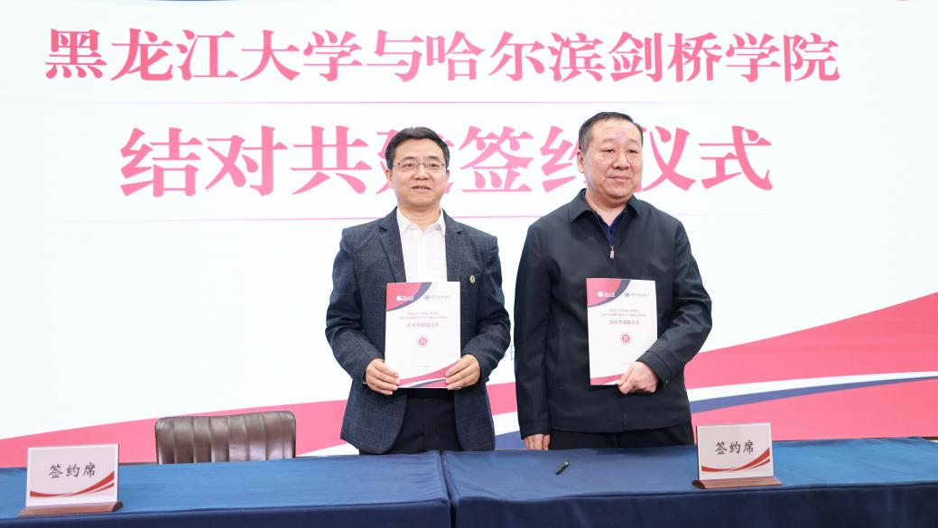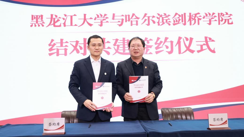 黑龙江大学党委副书记、校长王敬波与哈尔滨剑桥学院校长于越代表两校签约黑龙江大学经济与工商管理学院和哈尔滨剑桥学院工商管理学院签约黑龙江大学电子工程学院和哈尔滨剑桥学院智能与电气电子工程学院签约黑龙江大学机电工程学院和哈尔滨剑桥学院汽车与机电工程学院签约黑龙江大学教育科学研究院和哈尔滨剑桥学院教育学院签约黑龙江大学建筑工程学院和哈尔滨剑桥学院工商管理学院签约省委教育工委副书记王震在讲话中提到,黑龙江大学和哈尔滨剑桥学院作为全省首对公办院校与民办院校结对共建的高校,共建成果入选第六届全国民办高校党建和思政工作优秀成果一等奖,共建案例入选全省高校基层党建创新优秀案例,共建品牌“友声致远”入选黑龙江省首批高校党建品牌,为全省高校结对共建提供了实践参考,充分发挥了示范引领作用。他指出,两校结对共建是一项创新性的合作模式,旨在推动不同高校之间的深度合作,推动教育资源的优化配置,两校再次成功签约,标志着两校合作进一步升级,进入新的阶段。他希望两校要进一步发挥优势,促进教育资源的共享和优化,推动两校办学事业的协同发展。为此,他提出三点意见。一要进一步明确任务,确保各项工作有序推进。共建双方要以黑龙江省公办高校和民办高校党建结对共建的指导意见为抓手,明确新一轮共建期的目标和任务,制定详细的工作计划和时间表,充分发挥各自优势,深入挖掘合作潜力,确保工作有序推进,各项任务有效落实,实现互利共赢。二要聚焦重点领域,提升共建质效。两校在深化创新、合作共建的深度和广度上下功夫,以党建创新推动高质量发展,围绕互联互通,共建共享目标、人才培养、科研创新等重点领域,创新共建方式,丰富共建内容,提升共建质效。三要聚焦发展动能,服务龙江振兴发展。两校要建立健全结对共建的组织领导机构和运行机制,明确责任分工,加强人员配置和各项保障,对共建任务和共建工作提供必要条件,共同开展社会服务活动,共享资源平台和成果,推动办出特色、争创一流,共同为推进教育强国强省建设,推动龙江振兴高质量发展,作出新的更大贡献,共同答好教育强国“高校何为”这一时代课题。![]()