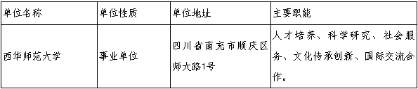 根据《事业单位人事管理条例》《事业单位公开招聘人员暂行规定》和《四川省省属事业单位公开招聘工作人员实施细则(试行)》等有关规定,经四川省教育厅备案,我单位拟面向社会公开招聘20名工作人员。现将公开招聘有关事项公告如下(本公告同时在四川省人力资源和社会保障厅(以下简称省人社厅)官网[http://rst.sc.gov.cn/,下同]“人事考试”专栏、省教育厅官网[http://edu.sc.gov.cn/,下同]和西华师范大学官网[https://www.cwnu.edu.cn/,下同]上发布)。