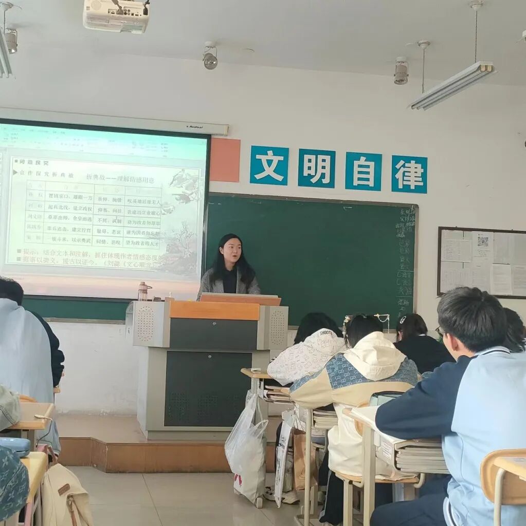 语文课堂是开展课程思政的天然沃土,肩负着思想政治教育的重任。李晓菲老师进行《永遇乐·京口北固亭怀古》课程思政案例展示。课堂上,李老师通过带领学生回顾怀古词中的历史典故,提炼思政元素,体会词人的创作心态与所抒情感,分析词人的英雄形象, 了解辛弃疾抗敌救国的雄心壮志和为国效劳的爱国热情,引导学生认知、理解、认同和传播中华文化,厚植学生的爱国主义情感,培养学生的时代责任感。数学课堂是立德树人的重要途径,是培养德才兼备的高素质技能型人才的重要阵地。姜迪老师通过《角的概念的推广》课程思政教学案例,从张文秀的链球运动的角度切入,引导学生学习她攻坚克难、顽强拼搏的爱国精神;以象限角的视角引导学生通过努力去领略人生路上的不同象限风景。