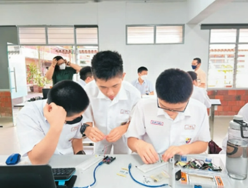 马来西亚华校学生在当地“海丝学院”数字能力课程班上学习。(受访者供图)