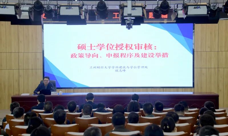 为进一步推进学校硕士点建设工作,4月11日,学校邀请兰州财经大学学科建设与学位管理处处长侯志峰教授做专题报告,常务副校长王顶明、各机关处室负责人、二级学院院长、教学副院长、教师代表近200人参加,党委委员、副校长兼学科建设与发展规划处处长张兴辉主持会议。