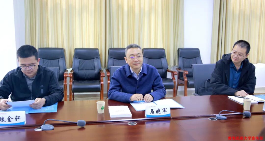 马维胜对马晓军一行莅临推进工作表示欢迎,就青海省人民检察院长期以来对我校法学专业学科给予支持,在应用法学领域开展全方位指导,进一步推进校检合作表示感谢,希望双方更加深入合作交流,共同服务于法治青海建设事业。