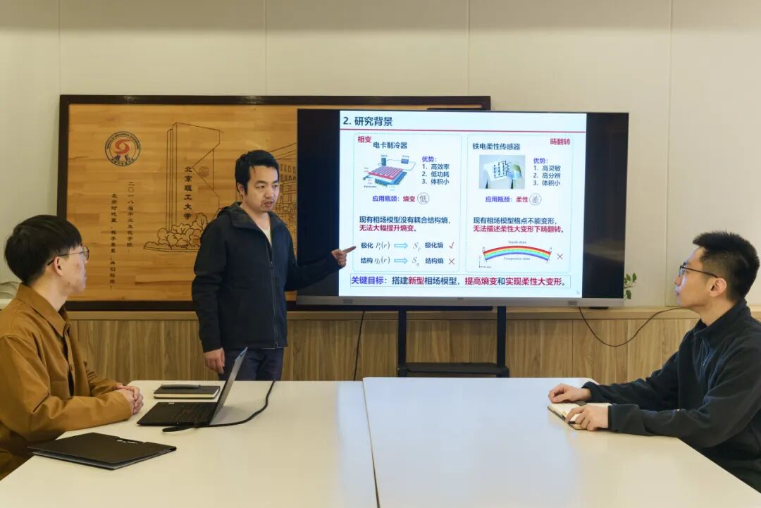“相场模拟方法可以描述不同材料间形成的相界面和微观组织相结构”,黄厚兵介绍到,在他研究的相场模拟设计铁电材料领域中,材料学、物理学、化学、数学、计算机等多个学科知识相互交叉。“我们既要懂材料学专业基础知识,还要会物理建模、编写代码程序,把自己打造成‘全能战士’”,只有综合应用不同学科,才能够理解不同微结构如何决定材料性能。