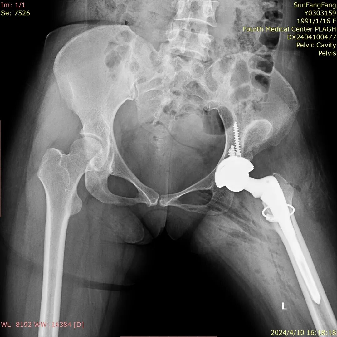 诊断:左髋关节发育不良,左侧股骨头缩小成形术术后。