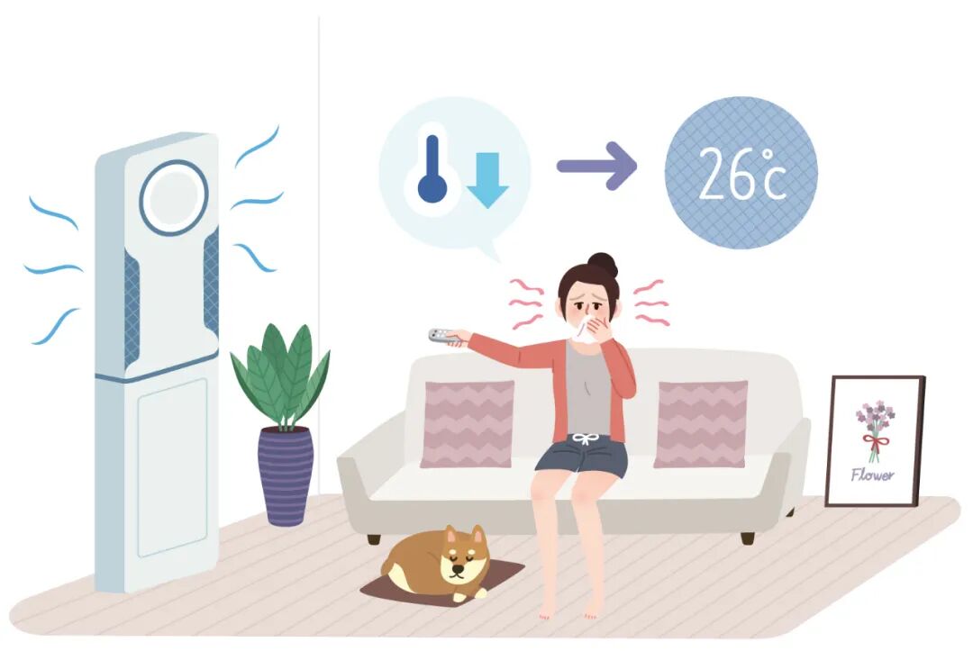 此时,如果将室内空调开得过低,容易患“热伤风”。常见症状是流涕、鼻塞、打喷嚏,有时还出现发热、头痛、呕吐、腹泻等症状。如果开空调睡觉时,记得要盖好被子。外出归来浑身出汗时,把身上的汗擦干净,再开空调或风扇。