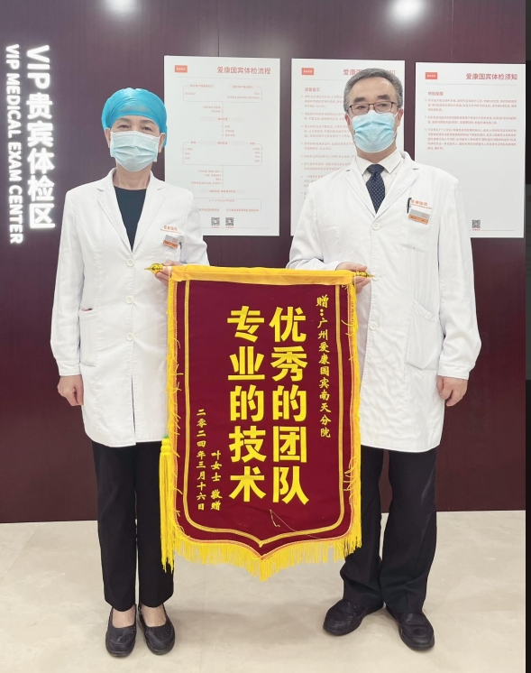 何女士赞分院服务优质,检查认真,做到早发现,早诊断,早治疗!特赠锦旗“检查细心,庇护生命”,以表谢意。