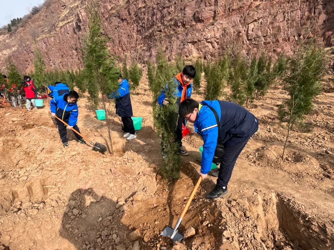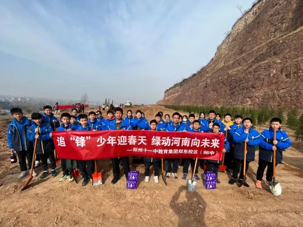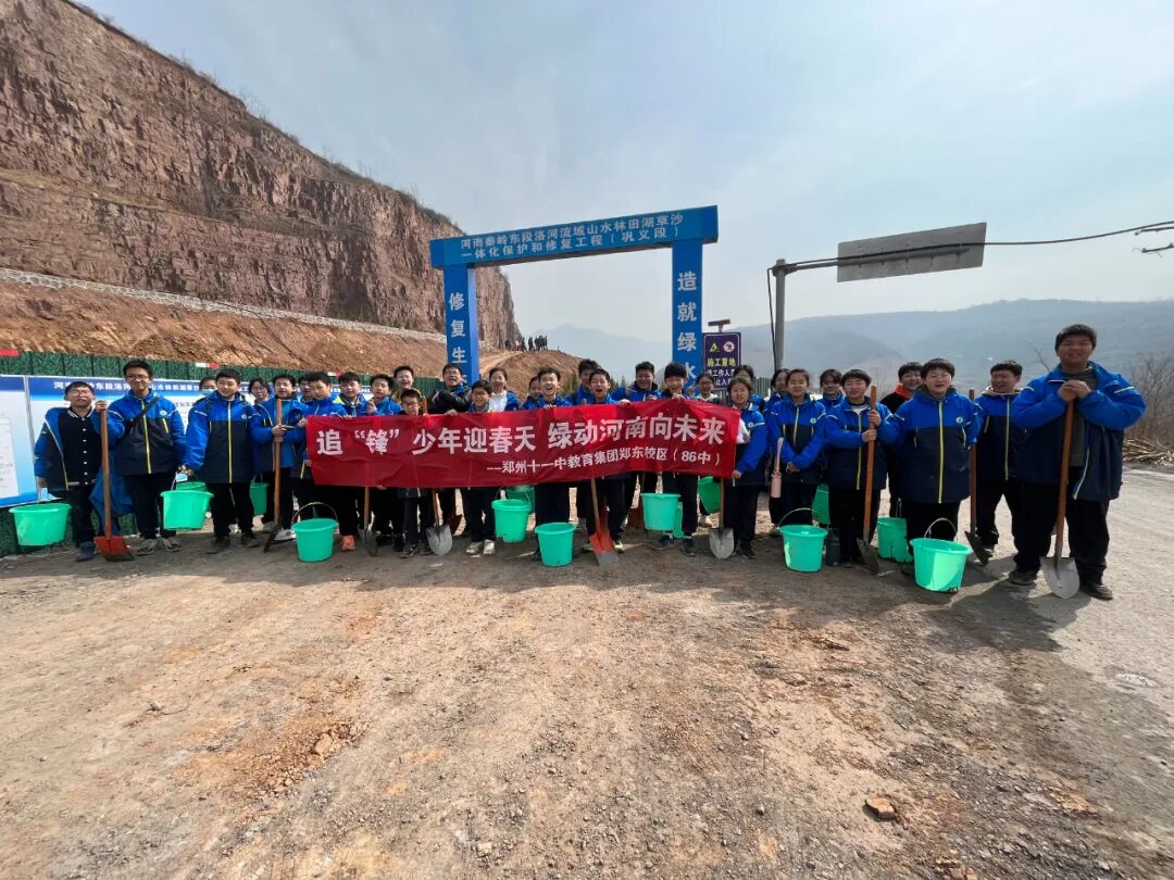 3月10日上午,在政教处和校团委的精心组织下,郑州十一中教育集团郑东校区(86中)部分七年级学生来到巩义市西村镇坞罗水库秦岭洛河山水工程生态修复项目区参加植树活动。