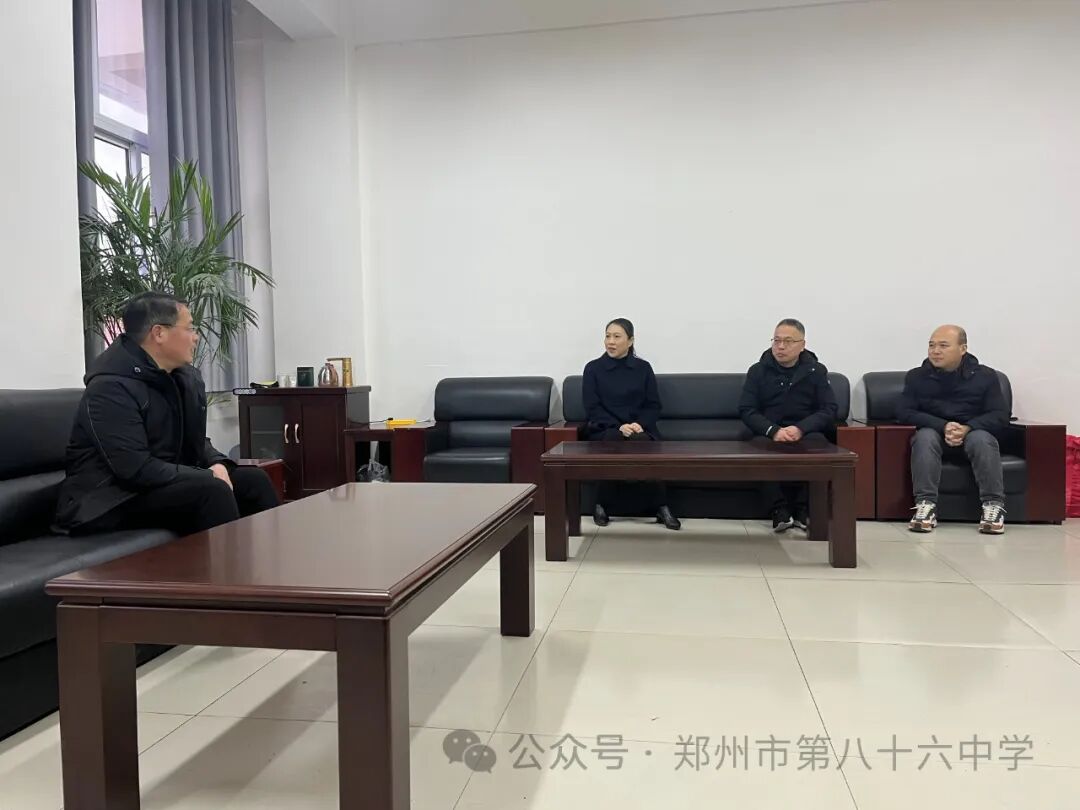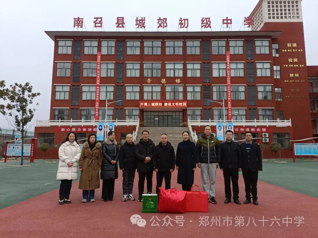 无悔付出育桃李,心系南召情意浓。为表达全校师生对支教老师的深切关怀,1月15日,郑州十一中教育集团郑东校区总校长孟晓莉带领86中校区副校长王秋阁、78中校区书记张志刚、副校长丁琳琳及两校中层干部等一行7人,来到南阳市南召县思源实验学校及南召县城郊初级中学分别看望慰问了在此支教的翟永阳、许强两位教师,受到了南召县两所学校的热情接待。