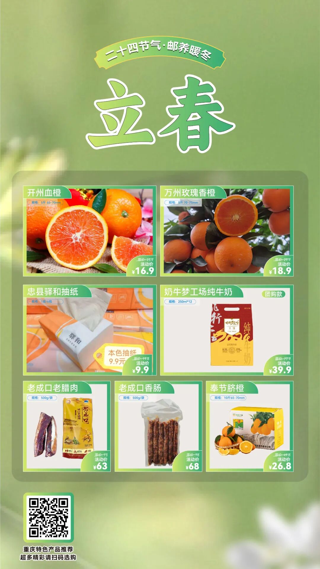 此外,重庆邮政还推出:万州玫瑰香橙、老成口老腊肉、奉节脐橙……