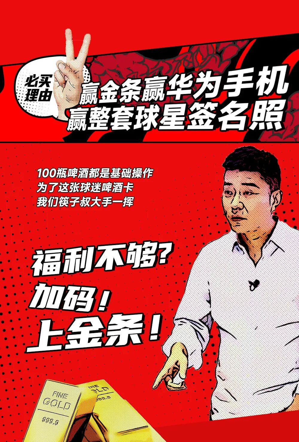 摘要:99元得100瓶啤酒!赢金条赢手机!