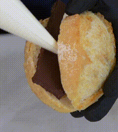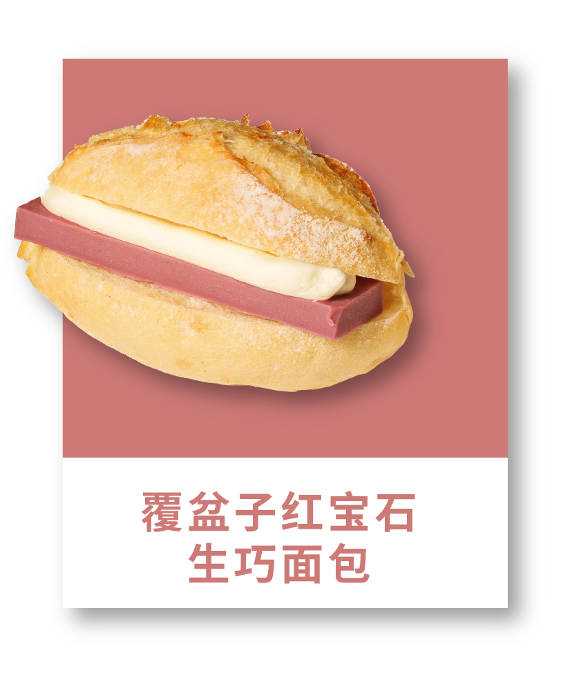 软软的面包中夹着嘉利宝红宝石巧克力生巧,酸酸甜甜的浆果风味,莓果微酸的中调,覆盆子后调的和谐搭配。生巧的丝滑配上香缇奶油的轻盈,嘉利宝红宝石巧克力天然色泽感,提升视觉上的清爽性,销量自然可观。
