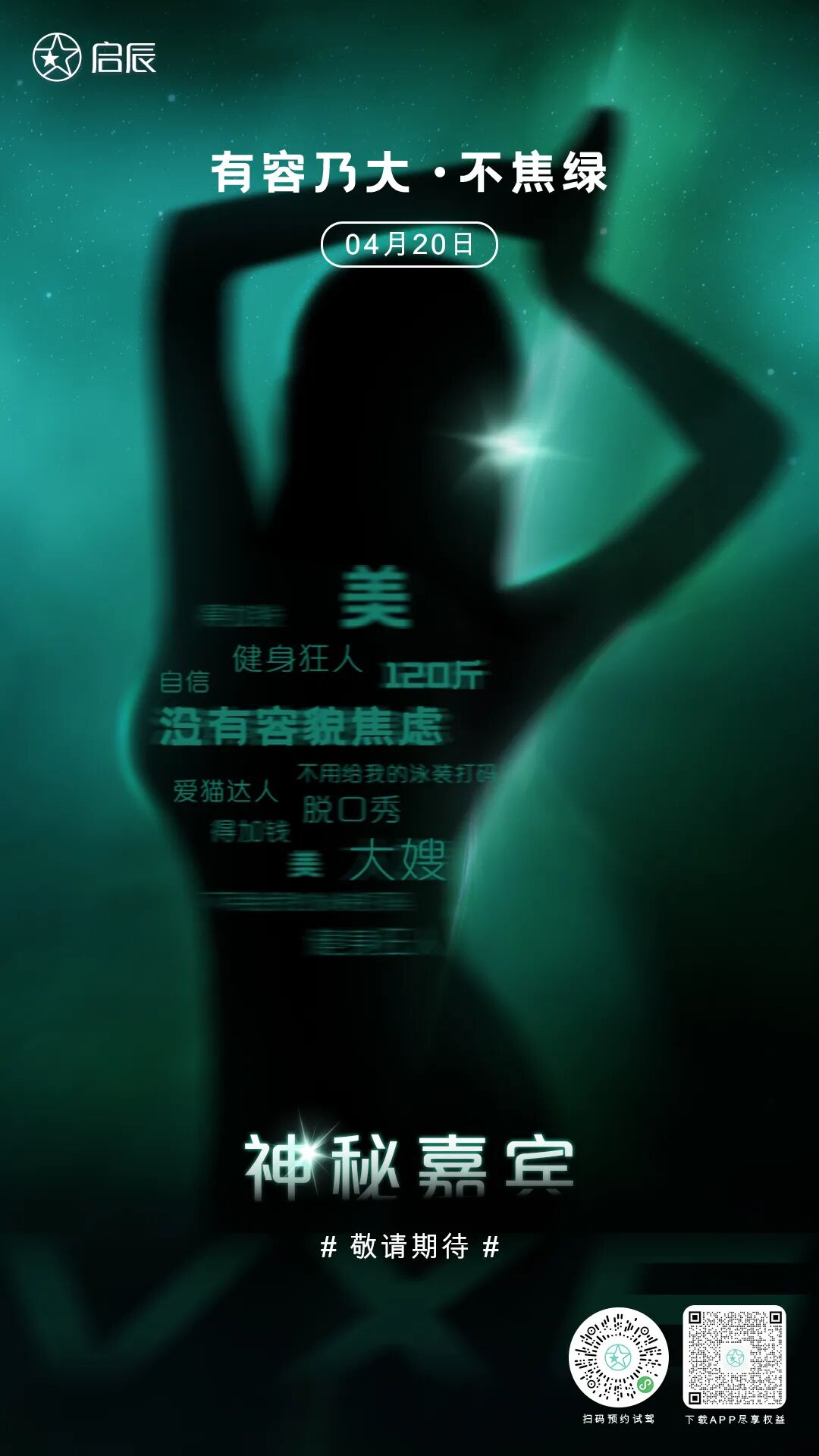 在4月20日的发布会上,会有神秘特邀嘉宾登场,这位嘉宾不仅热度高、咖位高、貌美颜值高,而且热爱生活,尤其是和启辰VX6的调性非常契合。什么样的嘉宾配得上百变家用神器启辰VX6?让人充满好奇。