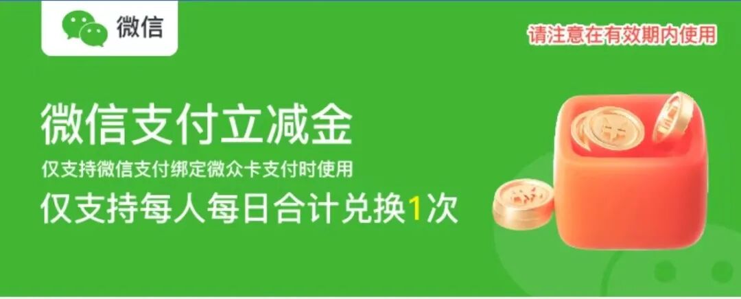 赚取的积分,除了可以兑换衣食住行好礼,还可以积分兑换【微信立减金】,把积分当钱花!