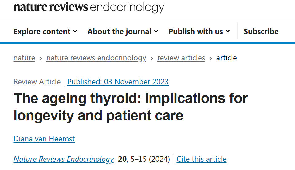 近日,英国《自然》子刊(Nature Reviews Endocrinology)发表综述,阐述了老年人甲状腺功能改变的潜在原因及其与衰老、长寿之间的关系。