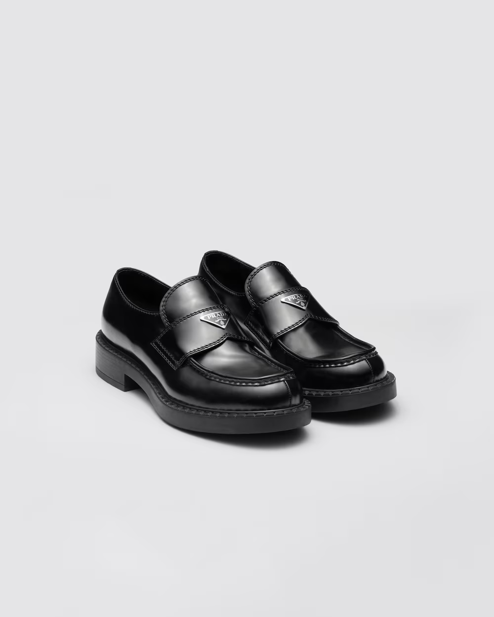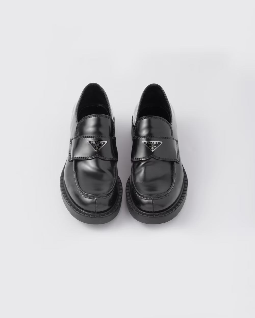 Prada 男士Chocolate 亮面皮革乐福鞋