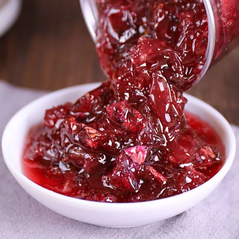 民国时期老昆明人最爱喝玫瑰升酒和玫瑰老卤酒,就是用白酒加玫瑰花瓣发酵蒸馏成的。同时玫瑰还可以跟蜂蜜或白糖搭配做成玫瑰糖酱。街头小摊常见的“米凉虾”糖水加入香甜的玫瑰糖,香甜软糯,入口冰凉,是夏季的解渴佳品。