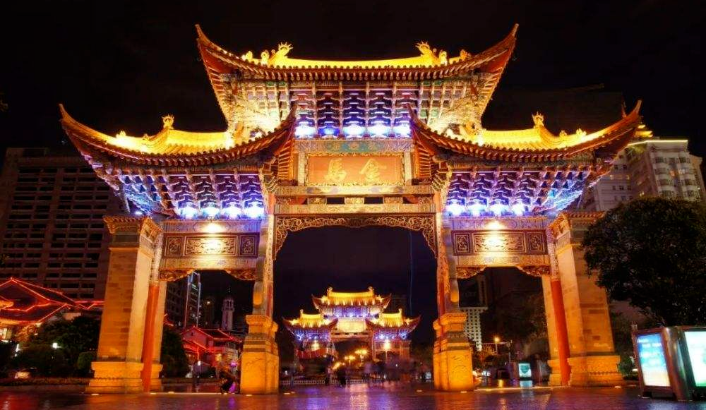 金马碧鸡坊是指昆明金碧路中段的金马坊、碧鸡坊,始建于明朝宣德年间,至今已有近四百年的历史。坊高12米,宽18米,具有昆明民俗特色,雕梁画栋,精美绝伦,东坊临金马山而名为金马坊,西坊靠碧鸡山而名为碧鸡坊。