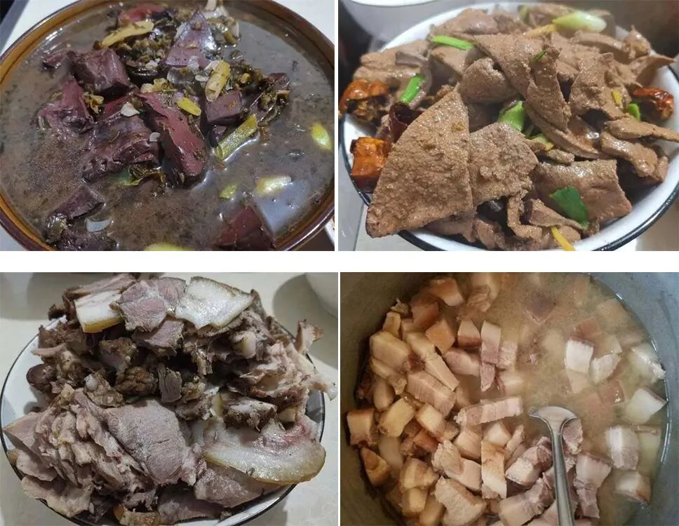猪血旺、坨坨肉、小炒肉、炒猪肝、煮粉肠、煮排骨等是宣威杀猪饭的经典菜式,没有大厨的精心烹饪,这原生态的肉料做出来的传统美食也是农家人年底最期待的美味。