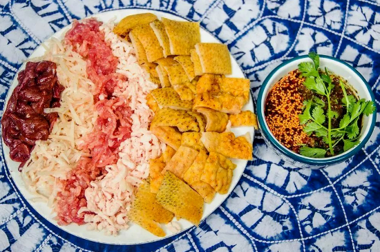 大理白族的杀猪饭,有著名的“土八碗”(是白族传统宴席上一套典型的菜谱,有煮、炒、蒸、炸、煎、腌多种菜肴,色泽鲜艳),不过让大家最念念不忘的还是大理火烧猪生肉片和火烧猪生猪皮。