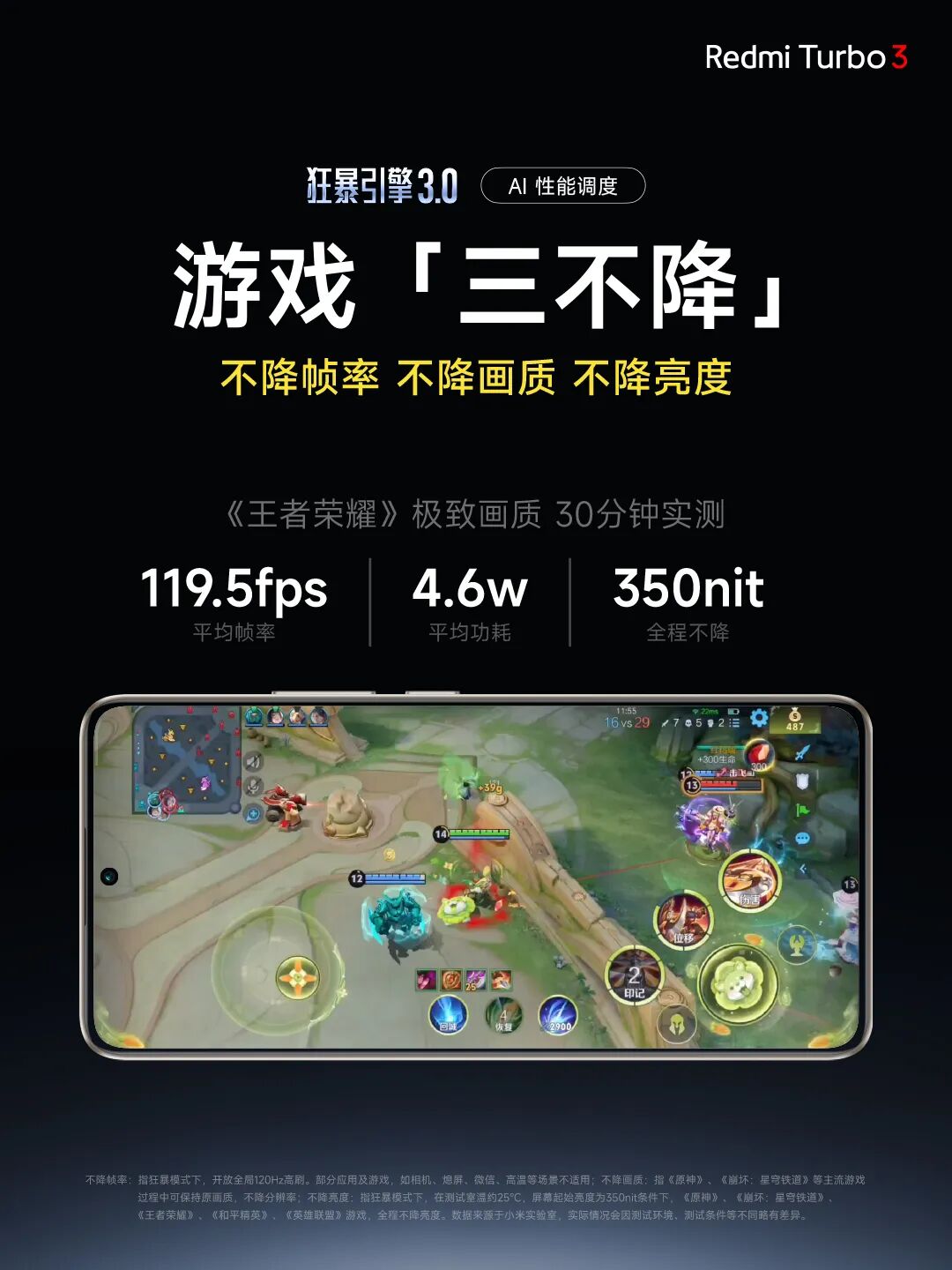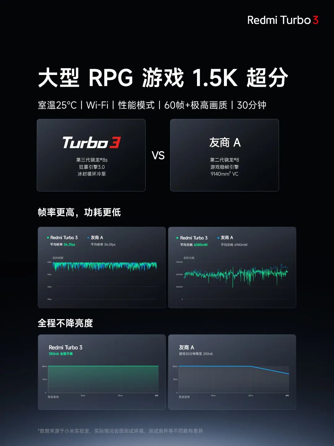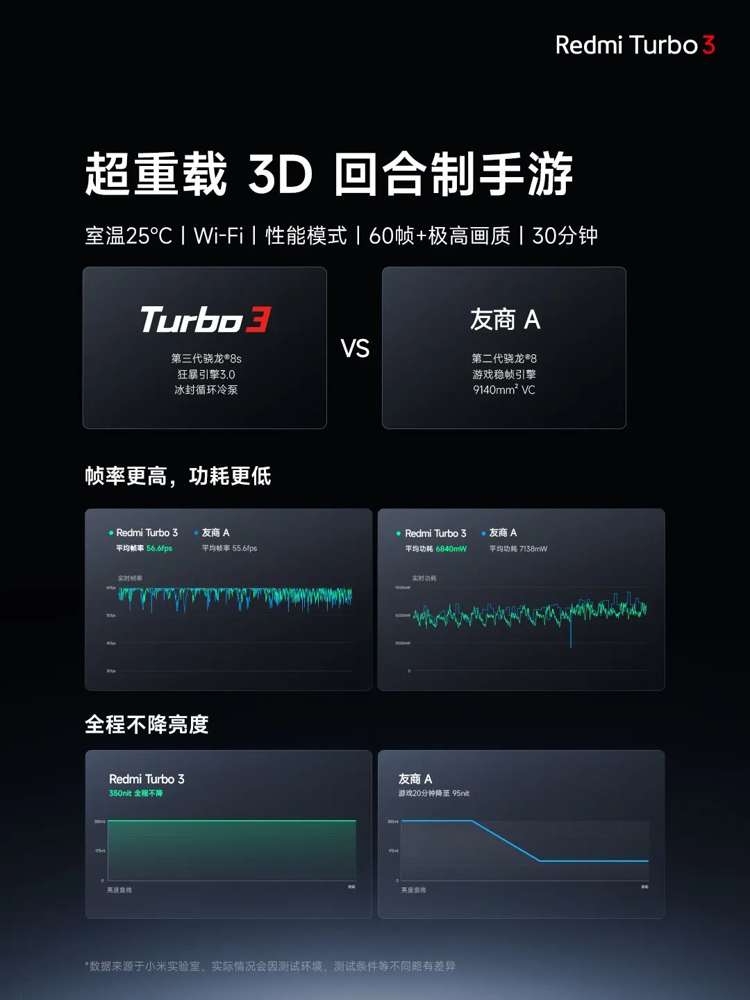 Turbo 3 帧率更高、功耗更低,全程不降亮度!