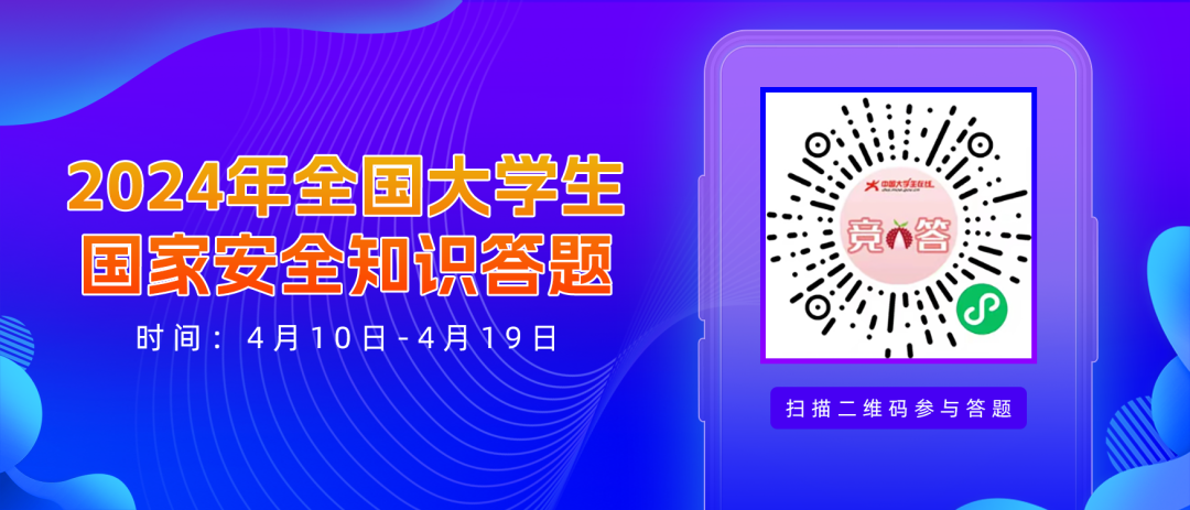 参与“全国大学生国家安全知识答题”活动,广大师生可以通过线上答题的方式了解国家安全知识,坚定维护国家政权安全、制度安全、意识形态安全,营造国家安全人人参与、人人有责的浓厚氛围。4月10日至4月19日期间,可以通过中国大学生在线网站(https://dxs.moe.gov.cn)或微信公众号(中国大学生在线)参与答题。