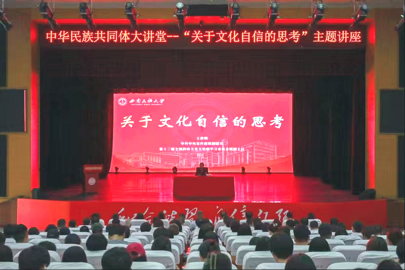 为深入贯彻落实习近平文化思想,习近平总书记关于加强和改进民族工作的重要思想,贯彻落实中央政治局第九次集体学习会议精神,学校党委围绕铸牢中华民族共同体意识主线,坚持思想引领,坚持共建共享,坚持系统化推进,坚持精品意识,打造“中华民族共同体大讲堂”,引导广大师生牢固树立休戚与共、荣辱与共、生死与共、命运与共的共同体理念,牢固树立正确的国家观、历史观,民族观、文化观、宗教观,深刻领悟“两个确立”的决定性意义,不断增强“四个意识”、坚定“四个自信”、做到“两个维护”,自觉做铸牢中华民族共同体意识的坚定拥护者、有力宣传者、忠实践行者。