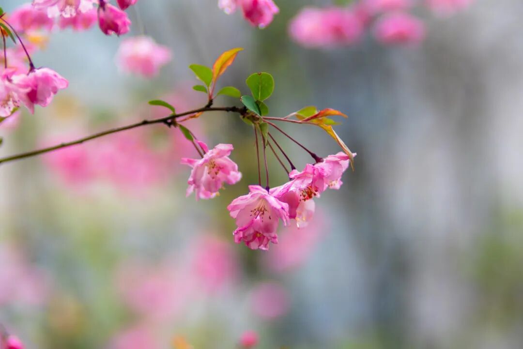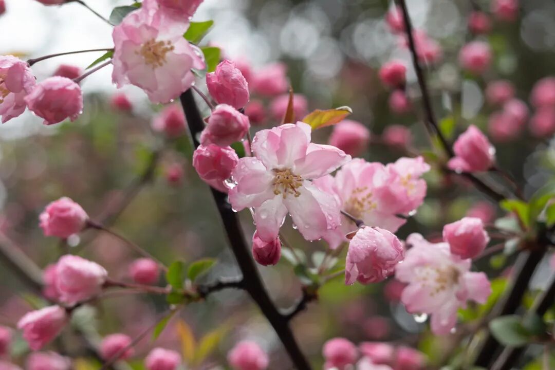 垂丝海棠是蔷薇科苹果属的落叶小乔木,花期在4月左右。花朵簇生于顶端,花瓣呈玫瑰红色,朵朵弯曲下垂,因花开呈束,一束具有4-6朵,花梗细弱下垂呈丝状故而称垂丝海棠。
