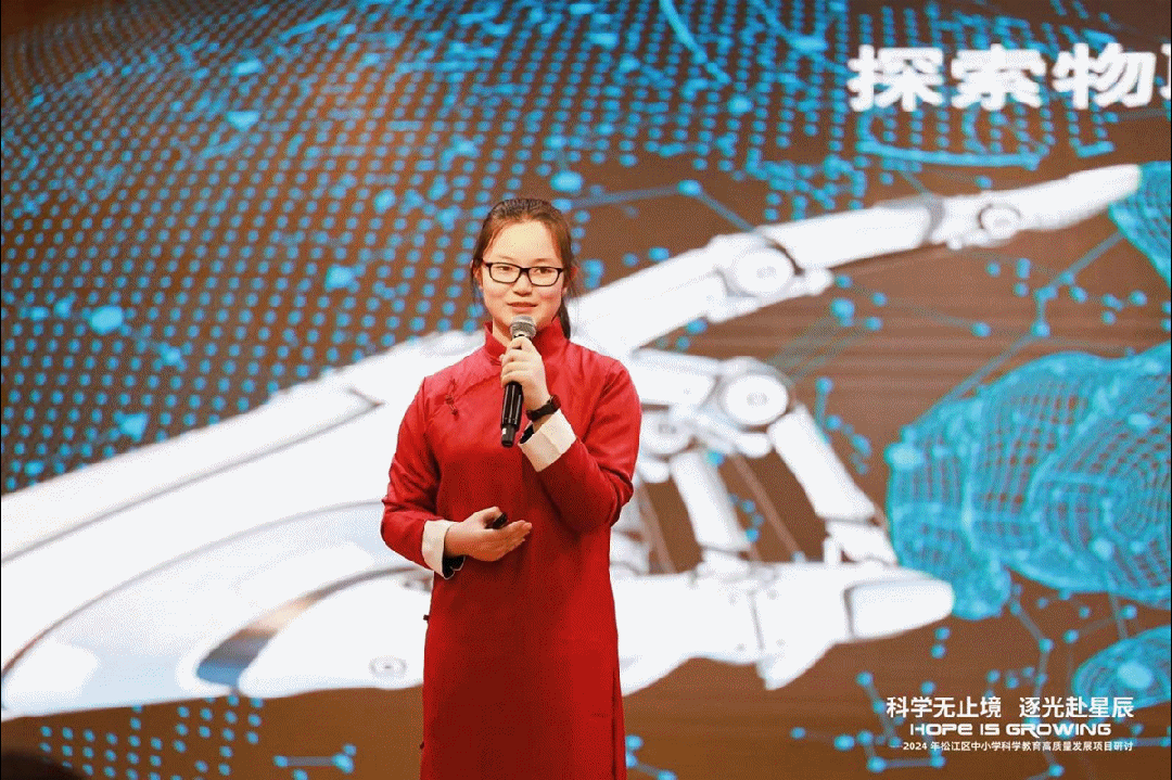 研讨活动中,来自松江区中小学校代表分别分享了“科技魔法秀——探索物联网、低代码、云计算”、学生科学实验种子课题以及学校科学教育实践成果。