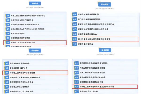 近日,由共青团河南省委开展的2023-2024学年高校“活力社团”风采展示活动TOP100榜揭晓,我校演讲与口才协会、大学生就业创业工作室、青年志愿者协会、青年马克思主义学习研究会入围2023-2024学年河南高校“活力社团”TOP100榜,且分别在文教体育、科技创新、社会服务、学业发展四个领域榜单中位列前10名。