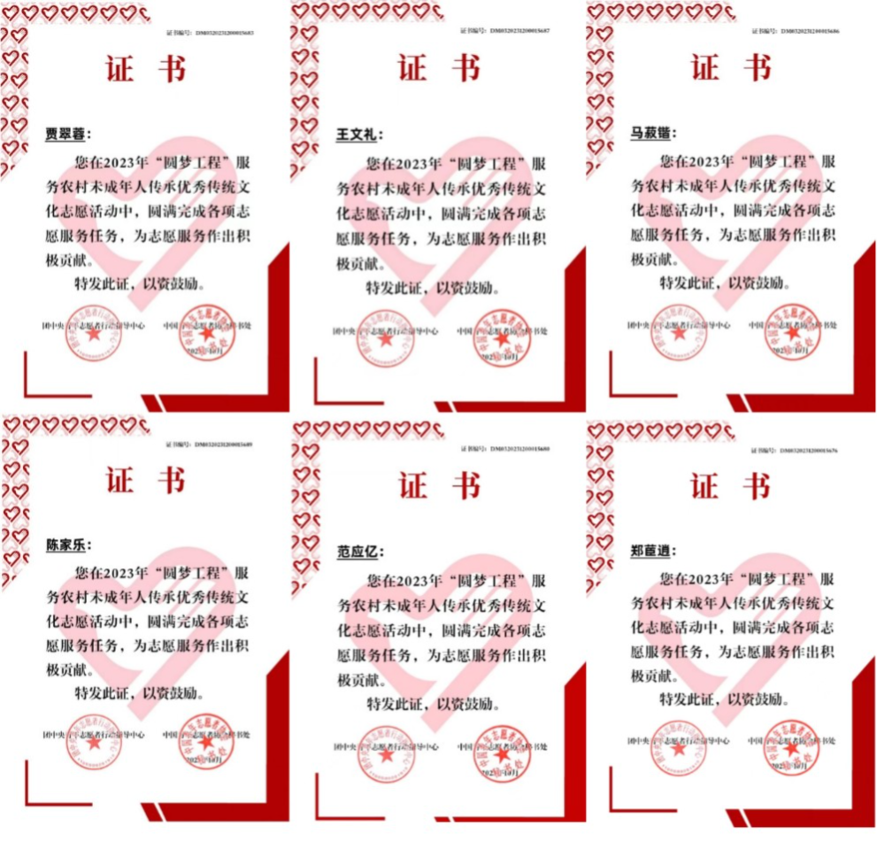 “圆梦工程”项目部分团队成员优秀个人证书