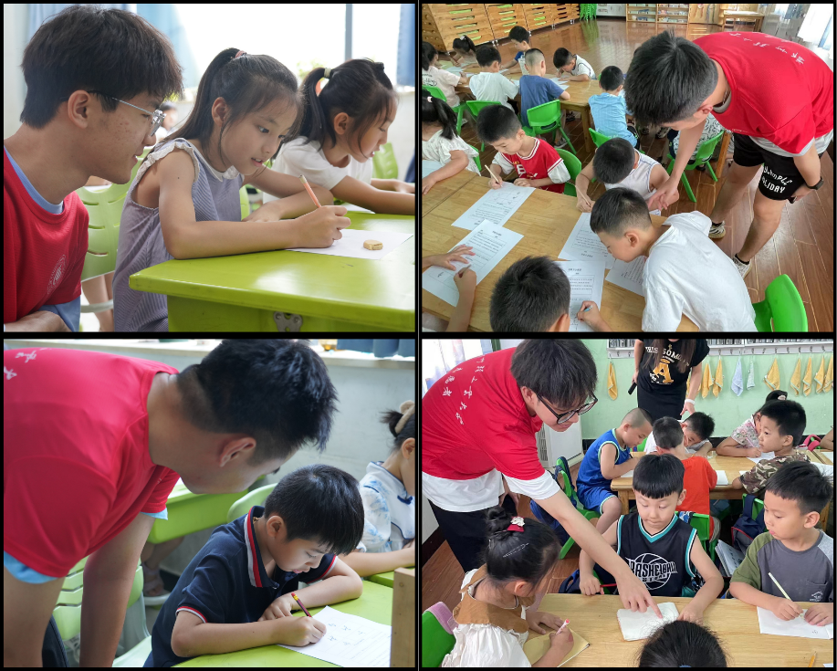 志愿者们指导小朋友们学习甲骨文