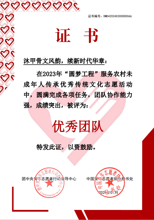 此外,在“圆梦工程”志愿服务项目中,团队被评为全国仅200支的国家级优秀志愿服务团队。