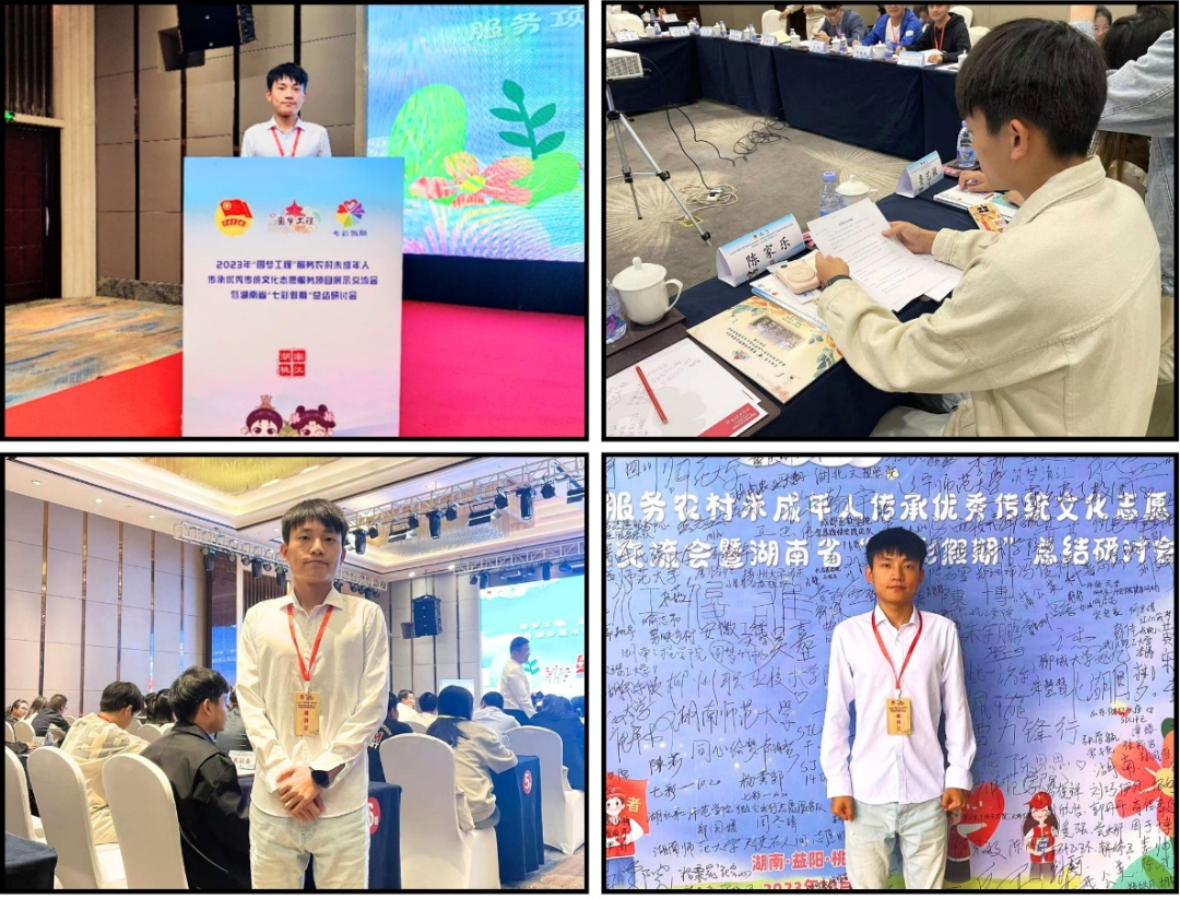 2023年10月21日至22日,2023年“圆梦工程”服务农村未成年人传承优秀传统文化志愿服务项目展示交流会暨湖南省“七彩假期”总结研讨会在湖南省益阳市桃江县举办,我校“沐甲骨文风韵,续新时代华章”实践团队作为河南省入选的两支优秀团队之一参与此次交流分享会,计算机科学与技术学院2021级学生陈家乐同学代表学校实践团队以“跋涉于烟火人间”为题,围绕团队开展志愿服务活动的特色做法、宣传推广、平台建设和影响成效等方面进行汇报,分享了我校“圆梦工程”志愿服务的具体实施情况和深远影响。