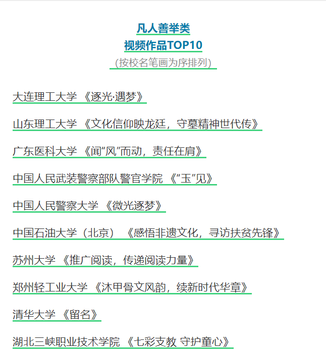 视频作品征集展示活动名单