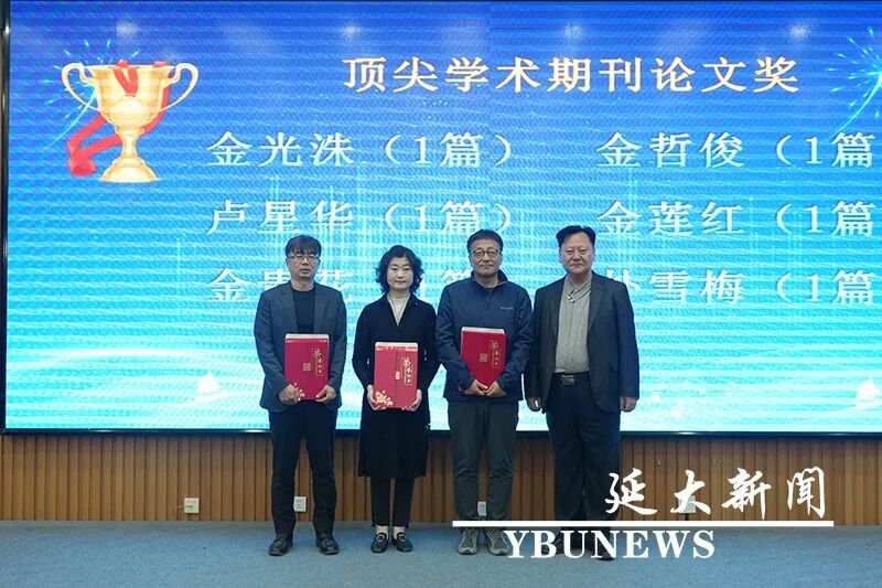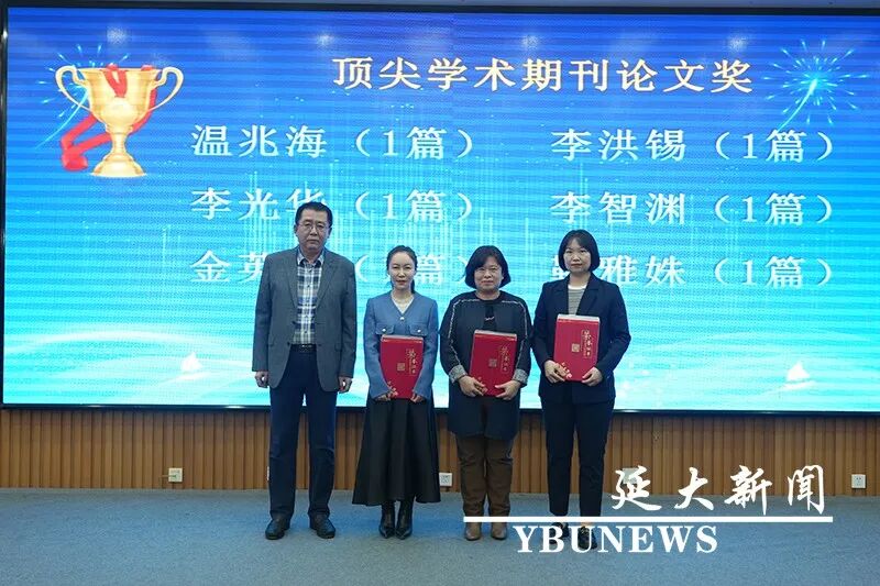 外国语学院院长朴银姬对郑判龙教育发展基金的发展历程作了介绍;外国语学院副院长崔一宣读了“郑判龙学术奖”“郑判龙教学奖”、一流学科建设“优秀学术成果奖励”获奖教师名单。蔡红星、金柄珉、朱卫红和一流学科荣聘讲座教授金虎雄、出版社董事长安国峰分别为获奖教师代表颁发荣誉证书和奖金。