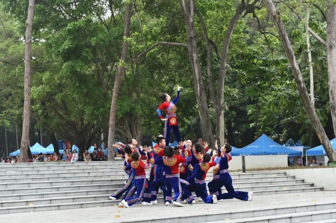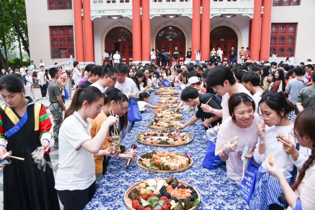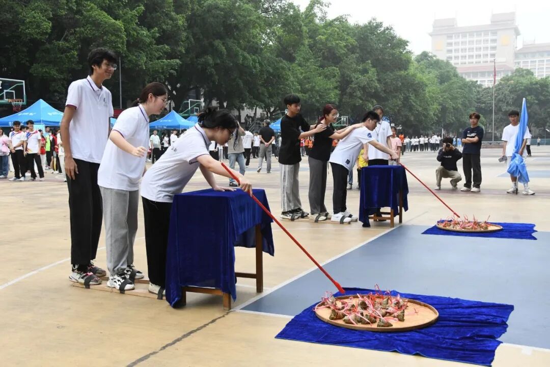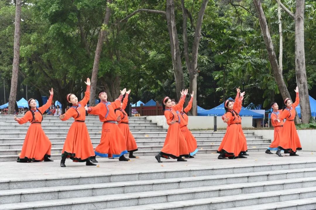 本次活动设有民族风情展示区、民族游戏畅玩区、民族乐器体验区、民族手工体验区、民族服装体验区、民族非遗制作区、茶文化体验区、礼品兑奖区、民族体育竞赛、山歌擂台挑战区、民族美食流水席等多个板块。竹竿舞动,茶香四溢,各式各样的传统民族服饰、手工包袋、非遗陶艺等民族手工艺品,造型各异、琳琅满目,烘托出浓浓的民族团结氛围,令师生目不暇接,流连忘返。