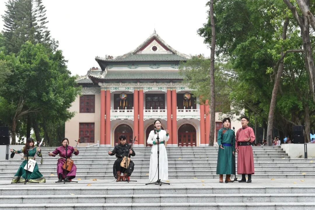 广西民族大学艺术团演员身穿炫亮美丽的银绣服饰,演绎舞蹈《苗女银秀》,令人眼前一亮。内蒙古财经大学学生带来长调歌曲《宝格达山》《走势溜溜的枣骝马》,绵长深沉、悠扬庄重的歌声跨越千里山海,连接起两校师生情。民族健身操《锦绣大中华》舞姿既刚劲有力,又婀娜秀美。马头琴乐曲《万马奔腾》激昂澎湃,在流淌的音乐声中,仿佛看到群马疾驰,奔腾嘶鸣,将现场气氛推向高潮。侗族伴以击鼓的舞蹈《蝉之歌》富有特色,通过敲击节奏抒发情感。壮族马山三声部民歌《蓝天广朗朗》,表达出父母的恩情与兄弟姐妹的深厚情谊。群舞《骏马赞》中,青年舞者青春飞扬,犹如骏马驰骋在广阔的草原,传递出坚韧与勇气。
