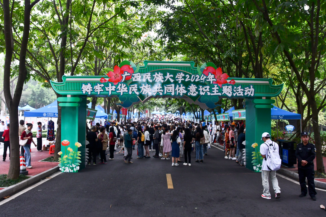 4月11日,广西民族大学举行2024年铸牢中华民族共同体意识主题活动,全体在家校领导及师生参加活动,内蒙古财经大学22名师生代表受邀参加活动。