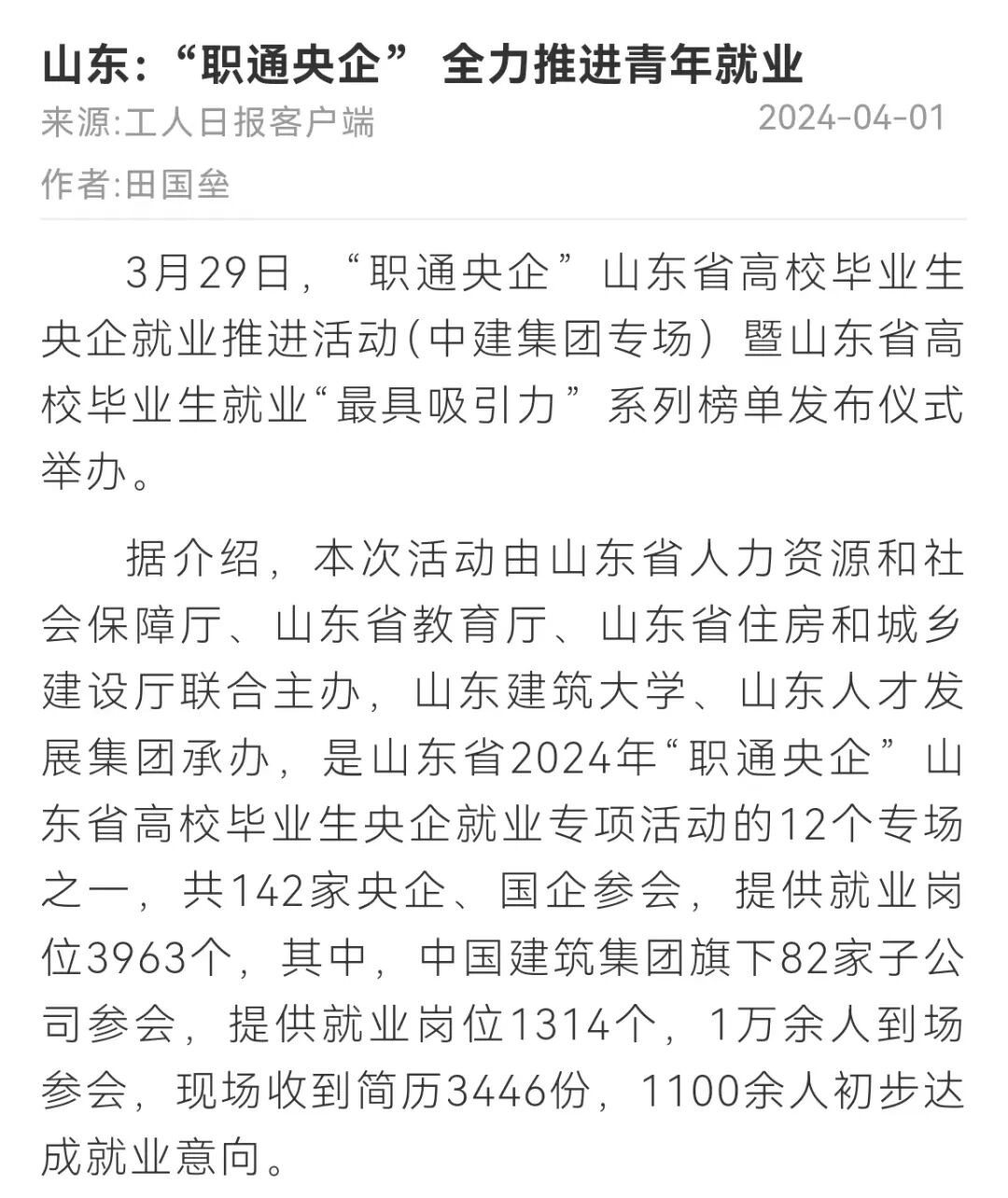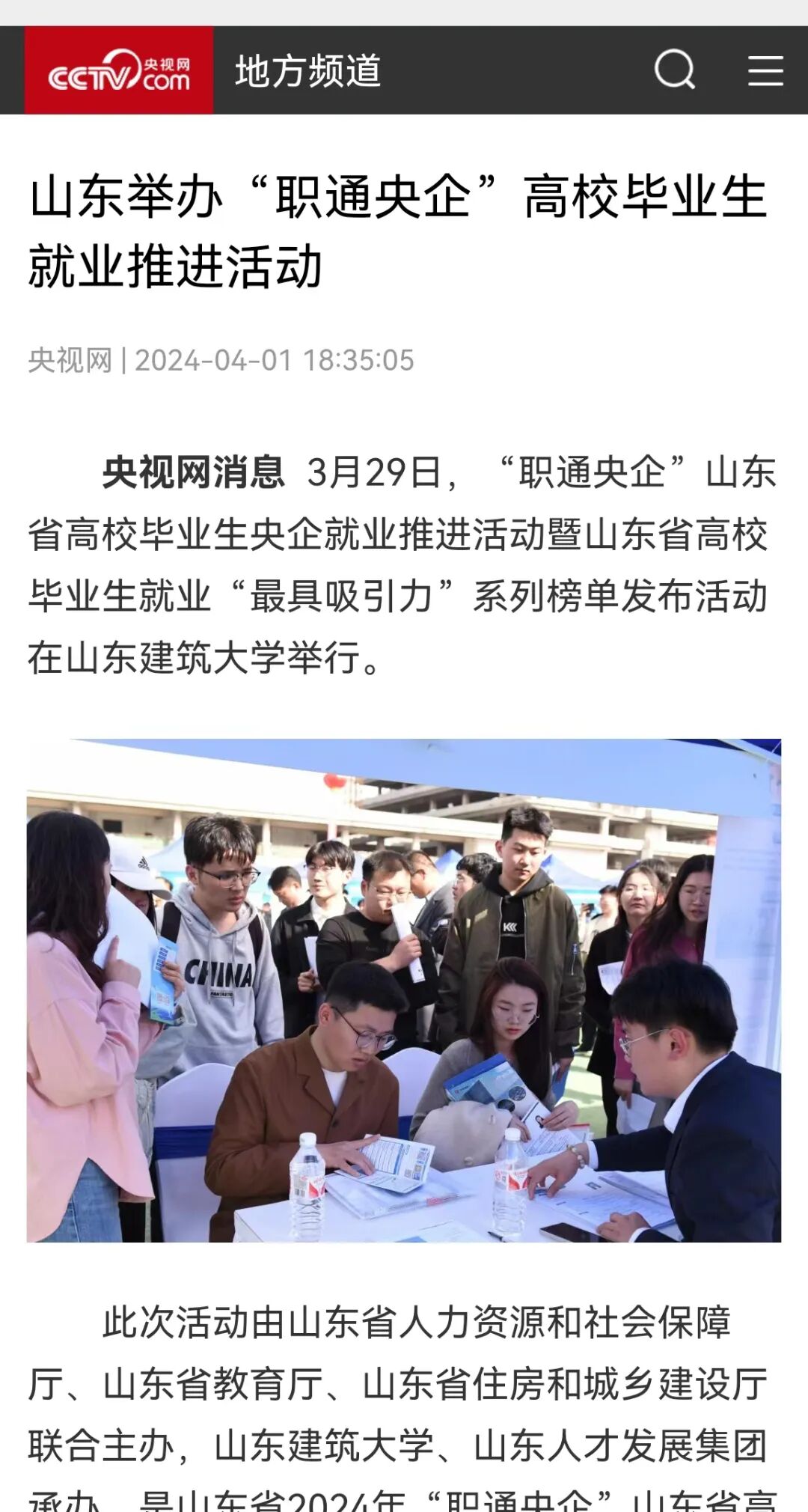近日,学校成功承办“职通央企”山东省高校毕业生央企就业推进活动(中建集团专场),一万余人到场参会,1100余人初步达成就业意向。央视新闻、山东新闻联播等多家主流媒体报道了招聘活动和我校就业工作取得的成绩。高质量的媒体宣传强化了“职通央企”品牌建设,助推我校毕业生顺利就业。