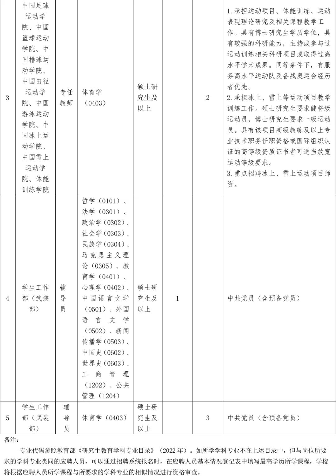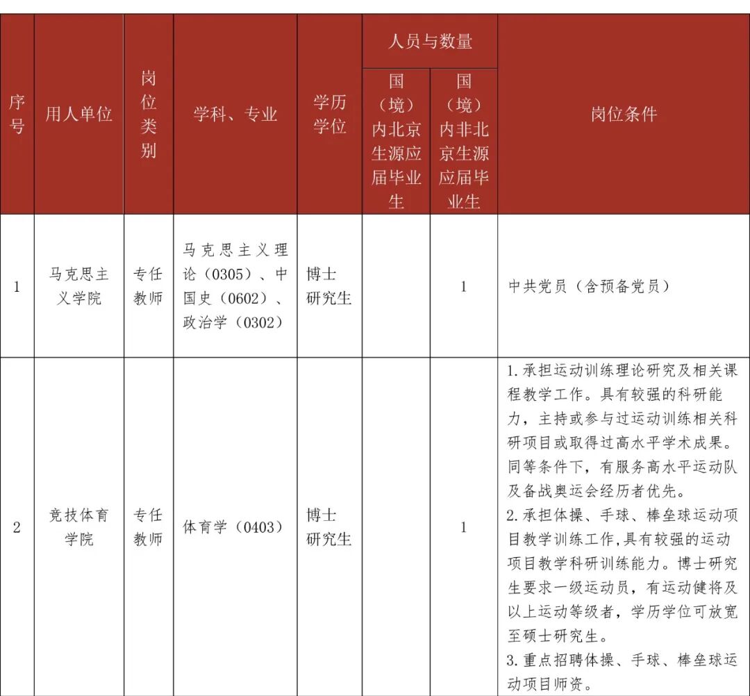 5.具有所报岗位要求的其他条件。具体要求详见《北京体育大学2024年秋季公开招聘岗位一览表》。