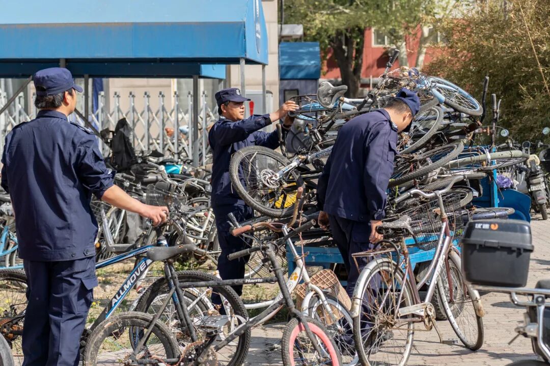 图|清理校园内长期无主自行车,对校内停车区域进行分类、划线。