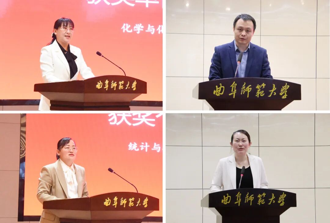 学团工作先进单位代表——化学与化工学院党委副书记孙金玲、翻译学院党委副书记岳峰,辅导员年度人物代表——统计与数据科学学院团委书记李宴美、传媒学院团委书记张守荣,作了交流发言。![]()