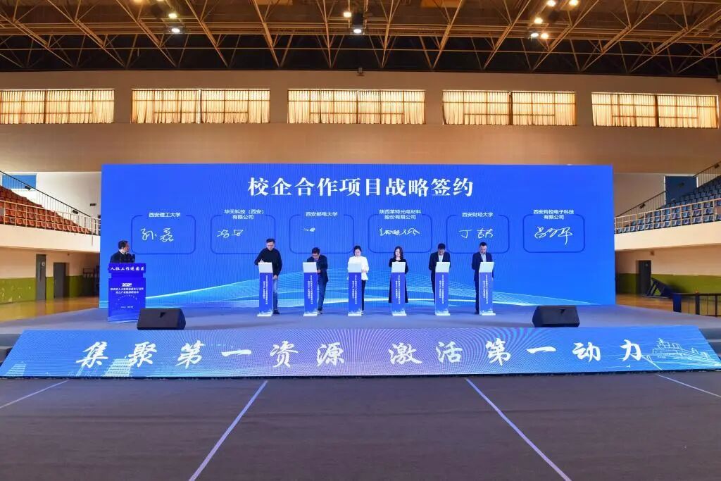 开幕式上,有关地市发布了招才引智政策,我校与陕西莱特光电材料股份有限公司签约校企合作项目,双方将在人才培养、科研合作等方面展开深入合作。